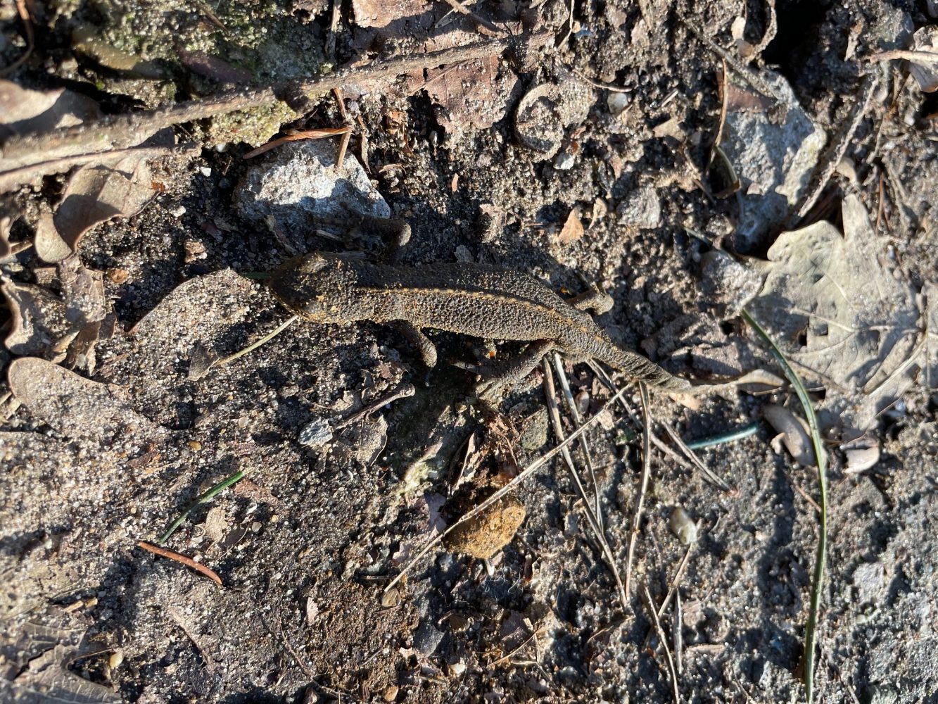 Ein Bergmolch, den wir beim Krötenretten am Galgenberg im Eimer hatten