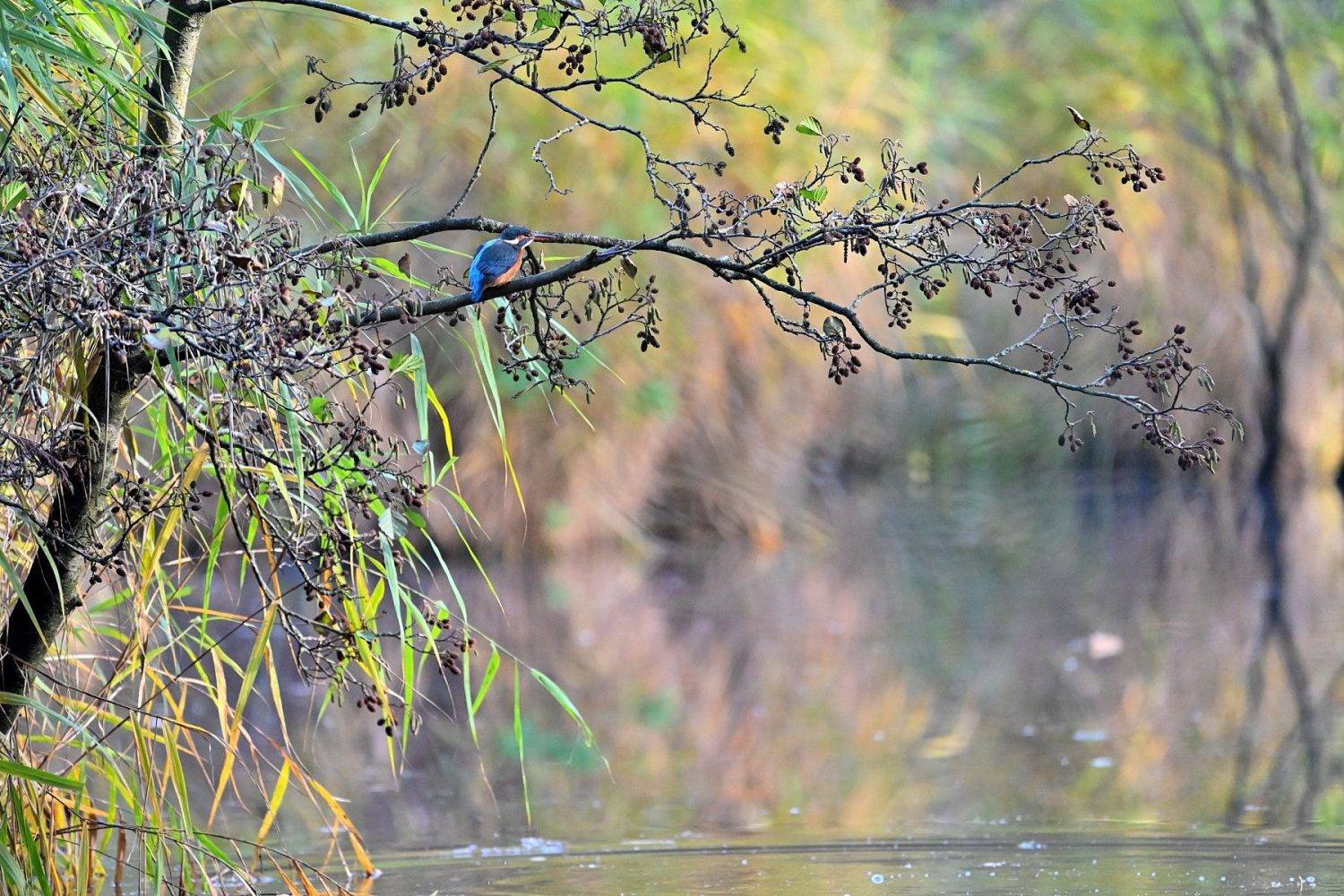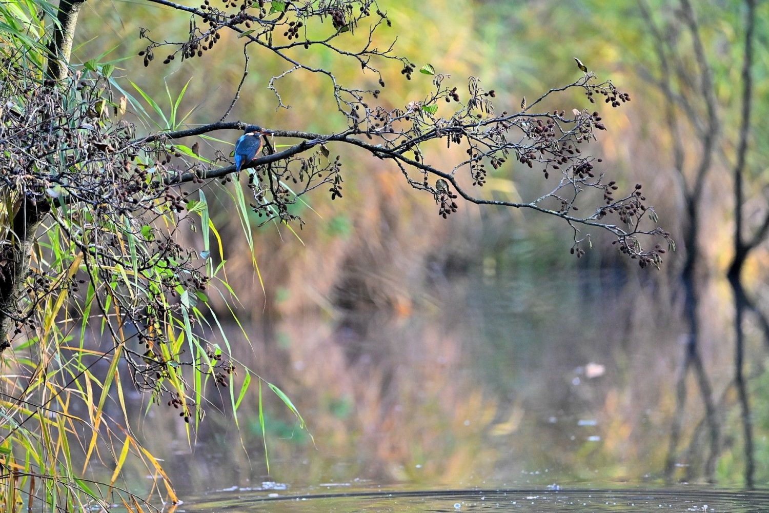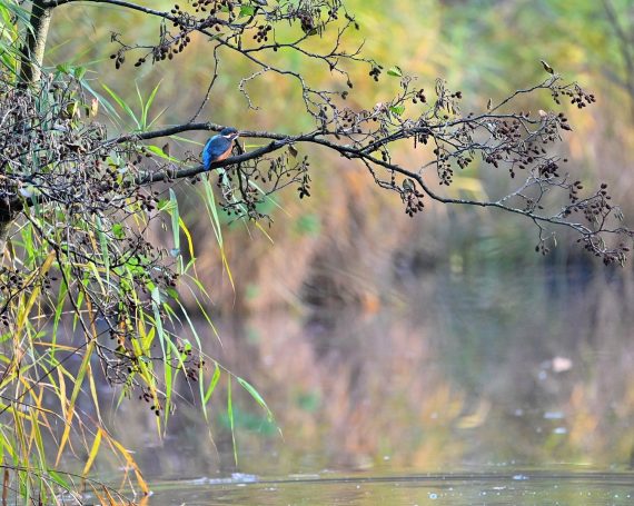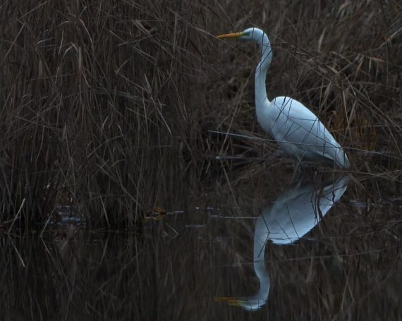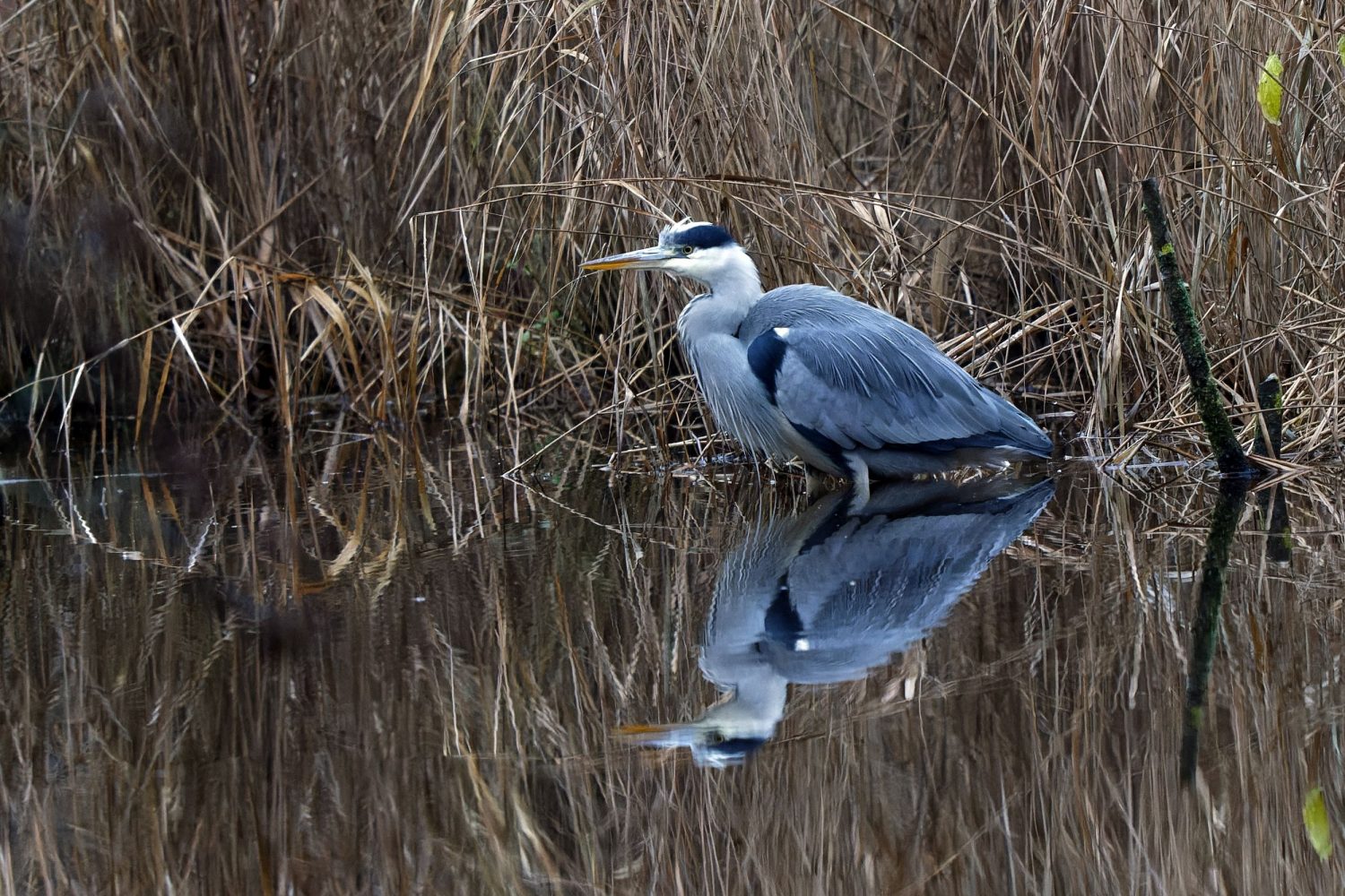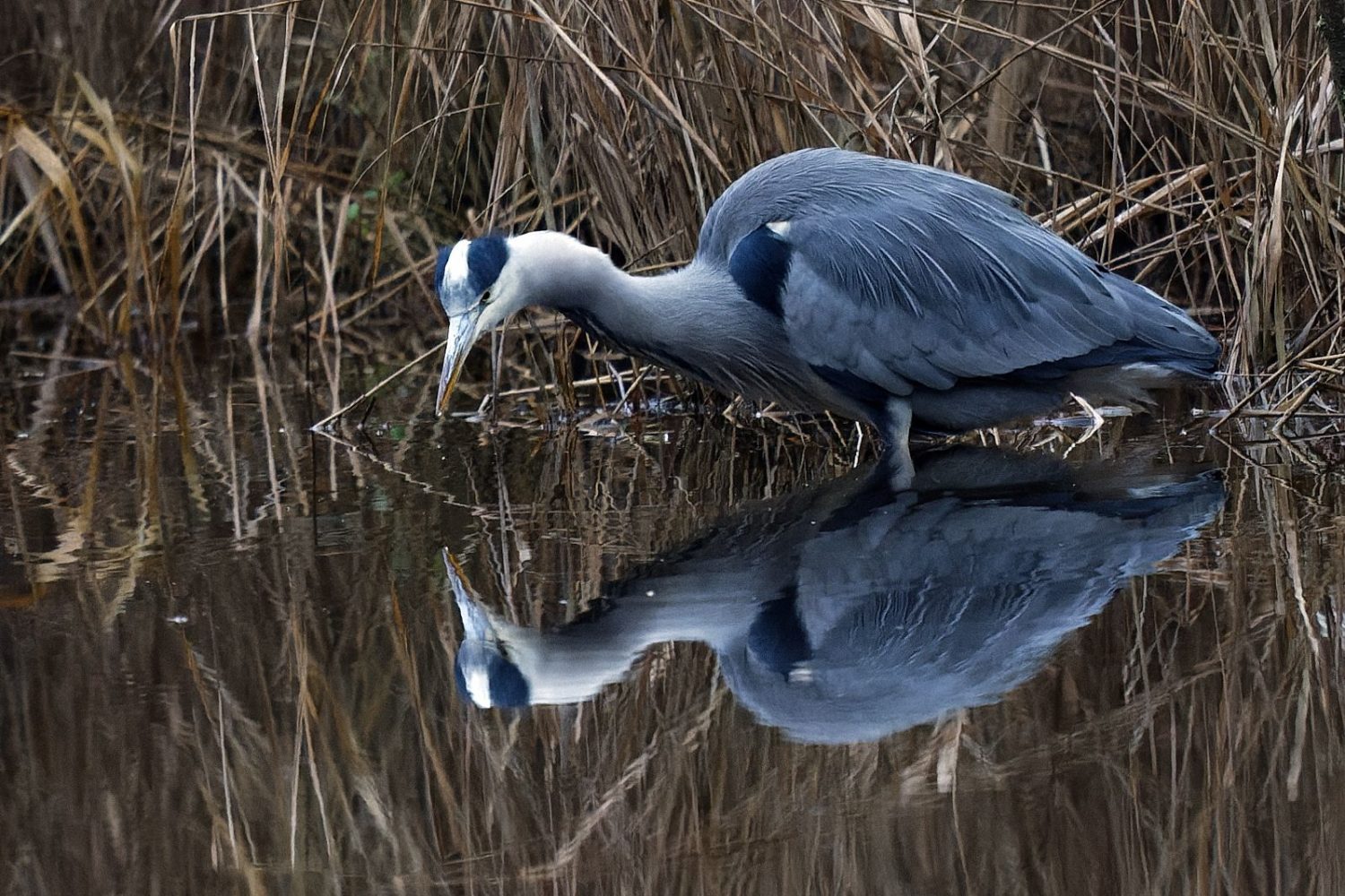 Am 1. Weihnachtstag erwischte ein Graureiher am Schloss Gemen einen wohl zu großen Fisch, den er wieder ablegte. Danach suchte er nach kleinerer Beute.