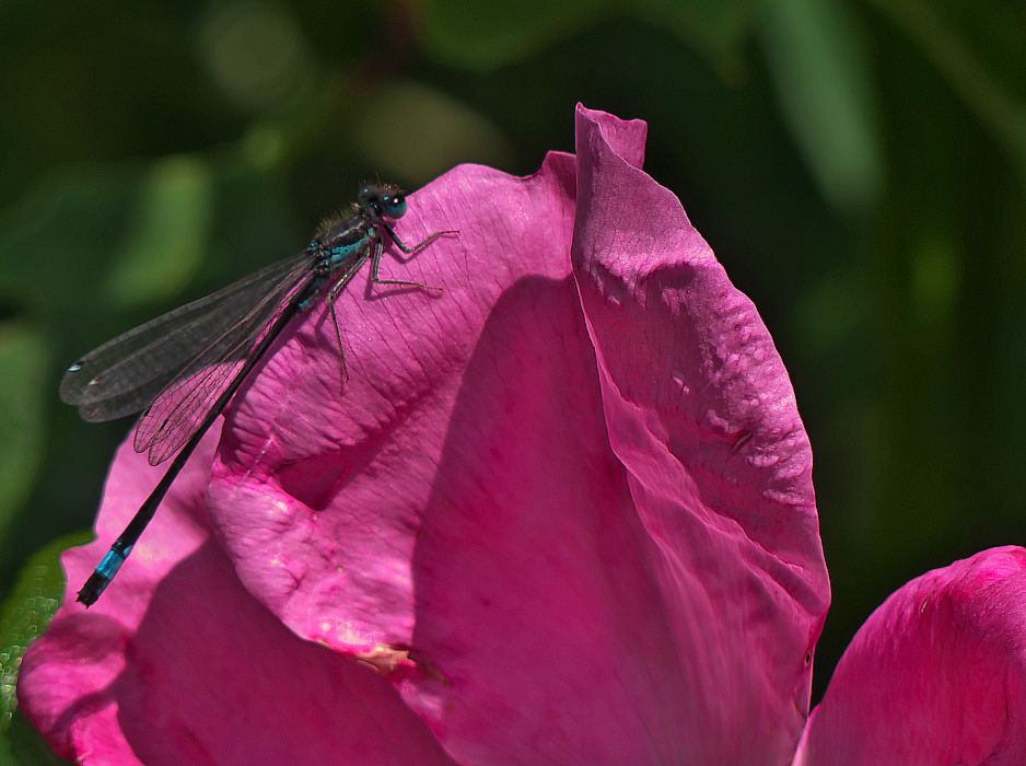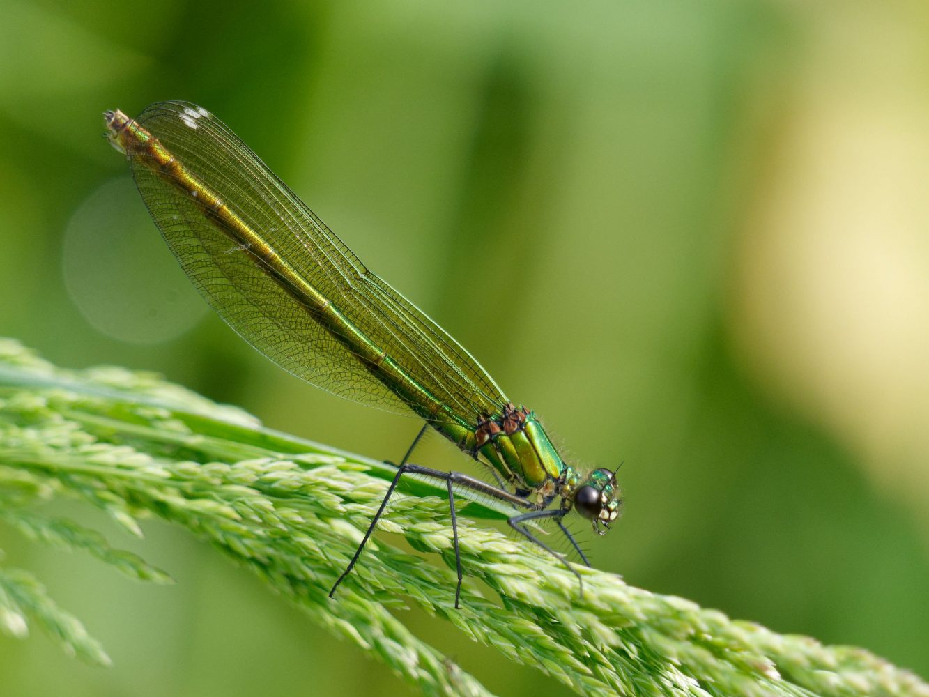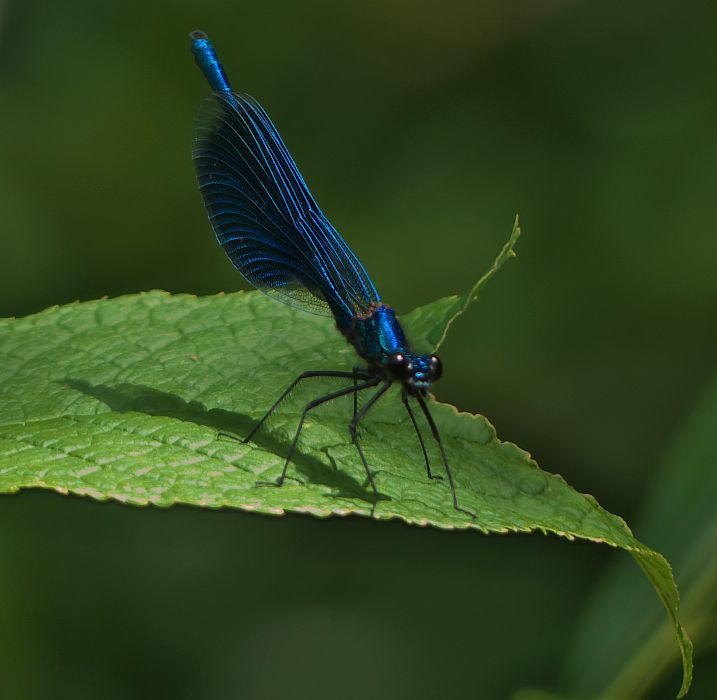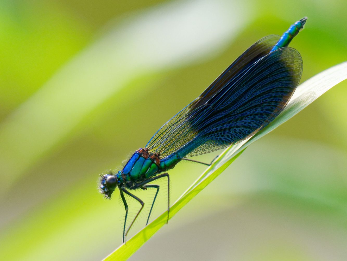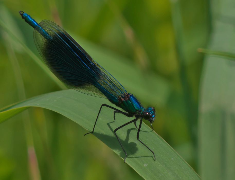 BlauflĂŒgel-Prachtlibelle, MĂ€nnchen; GebĂ€nderte Prachtlibelle, mĂ€nnlich u weiblich (grĂŒn); am Pröbstingsee