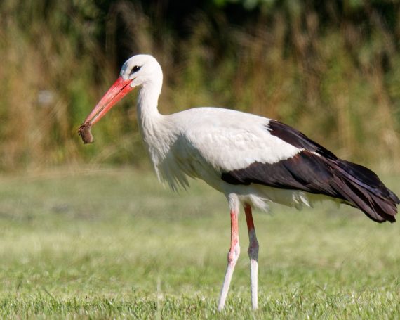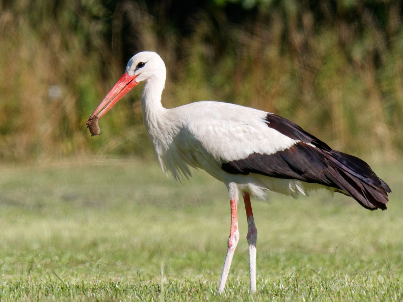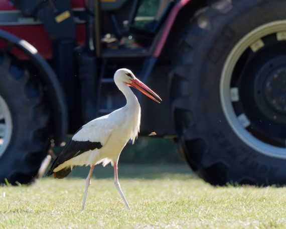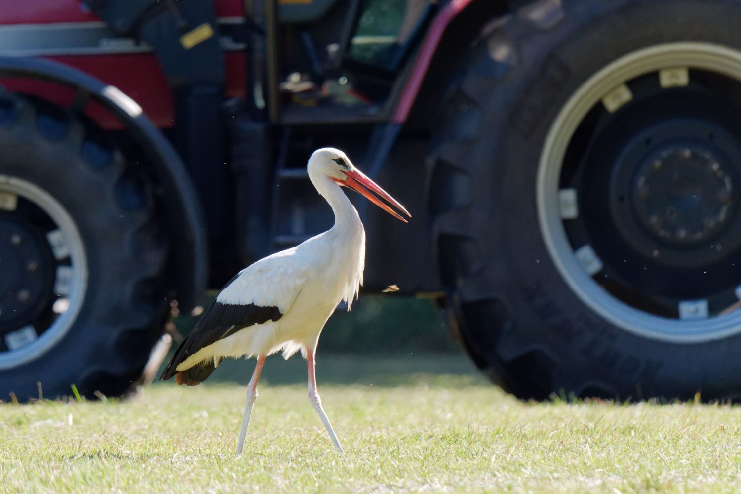 In Hoxfeld Weißstorch Einzeltier beim Jagen zugeschaut. Das frisch gemĂ€hte Feld gab hauptsĂ€chlich Insekten und einige FeldmĂ€use fĂŒr Meister Adebar her.