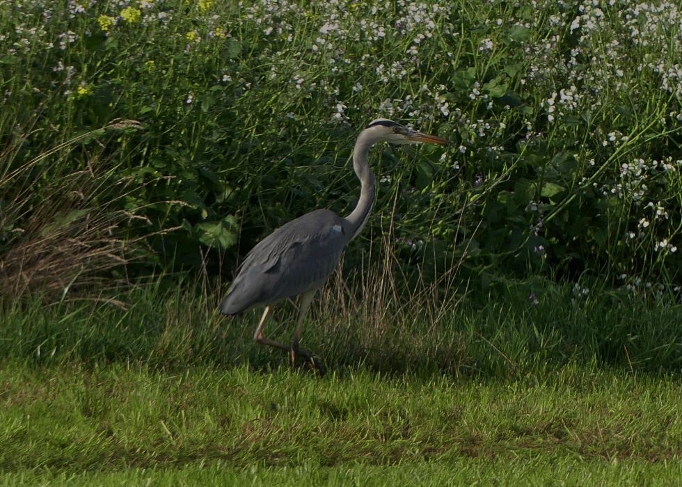 Dieser Graureiher folgte am 30.10. auf einer frisch gemĂ€hten Wiese an der Straße ‚Im Trier‘ in Marbeck dem Traktor mit AnhĂ€nger, der das frisch gemĂ€hte Gras abfuhr.