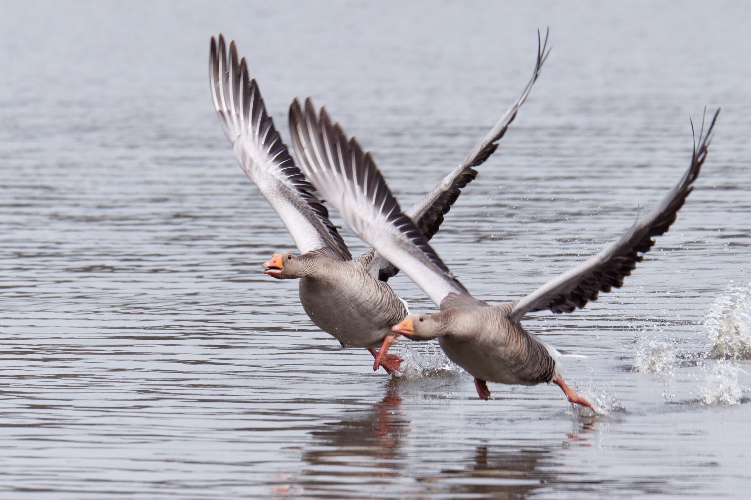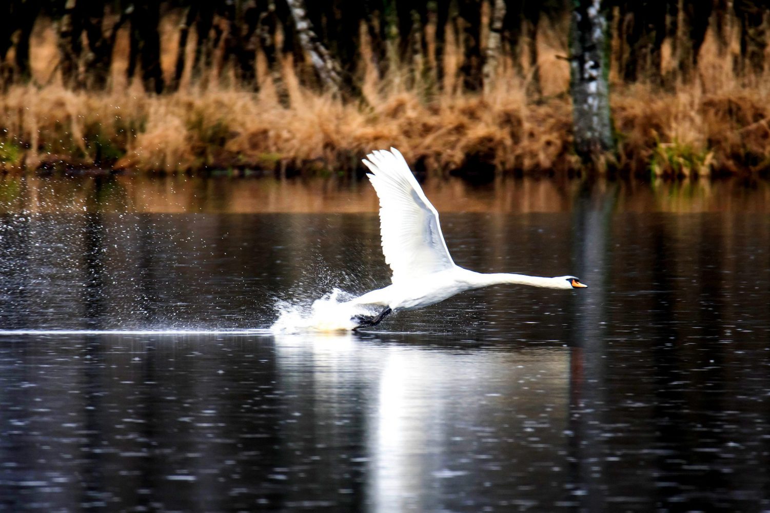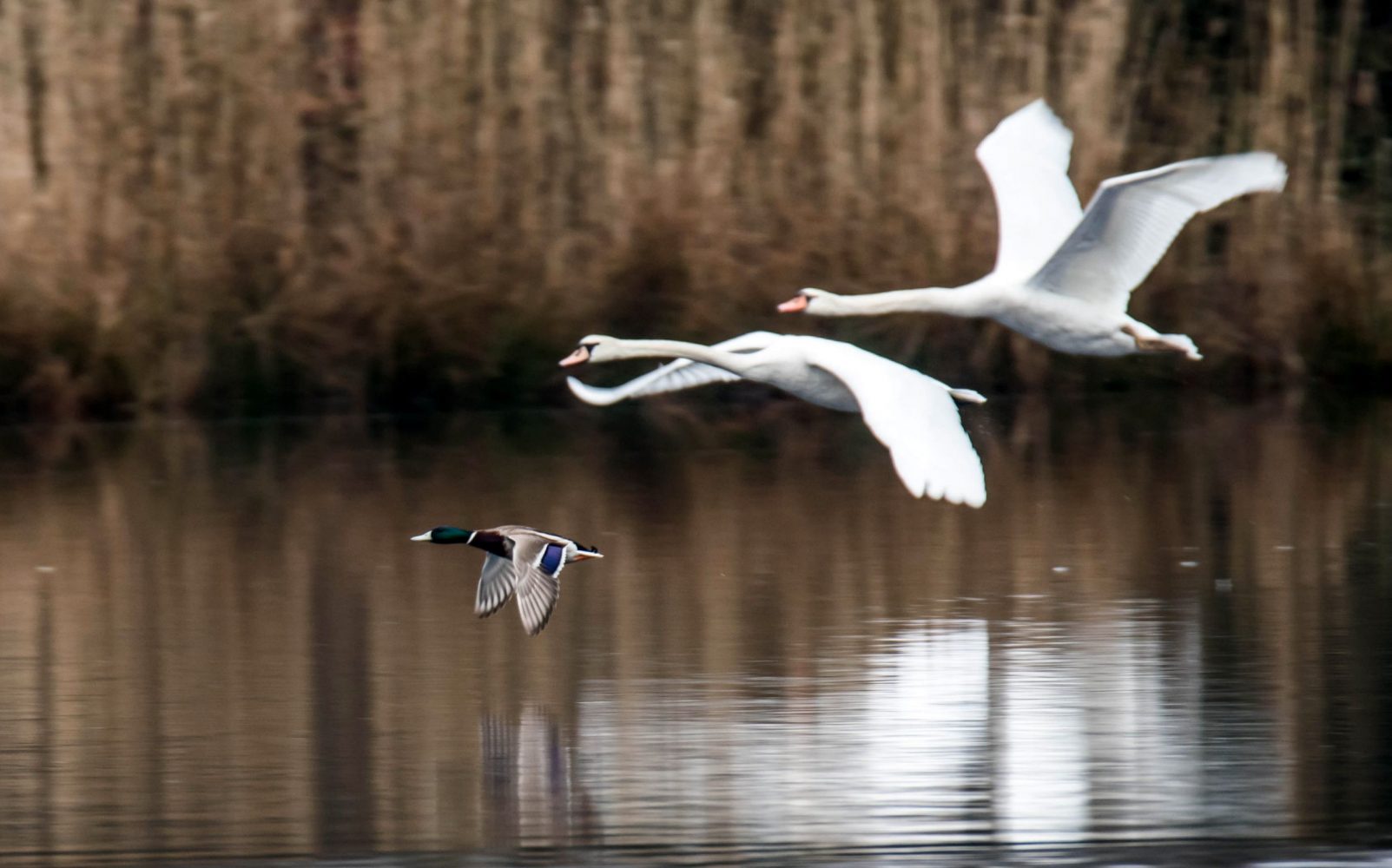 SchwÀne im NSG Heubachwiesen, hier am Torfvennteich beim Abflug. Das ist schon gewaltig, wenn die loslegen.