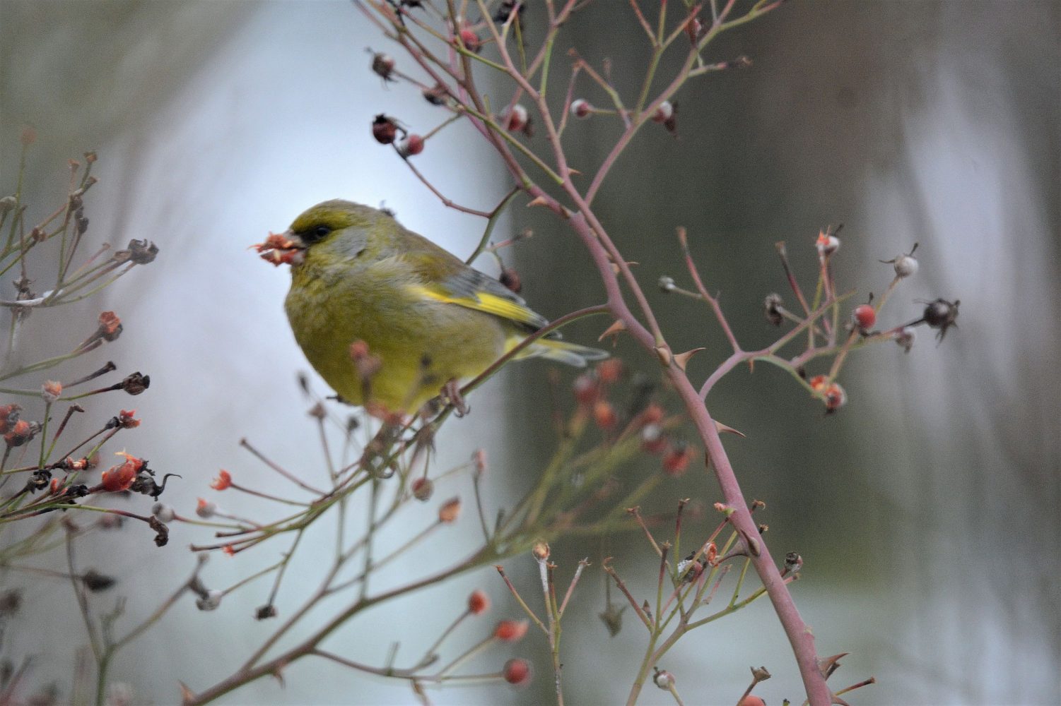 Gerade waren neben den „ĂŒblichen VerdĂ€chtigen“ (div. Meisen,Buchfinken,Amseln,Heckenbraunellen usw.) 6 GrĂŒnfinken zu Gast.