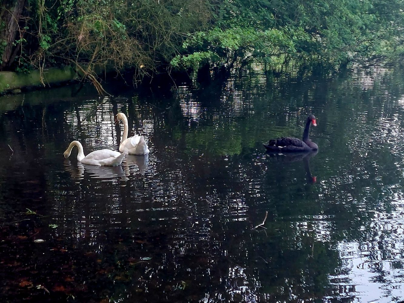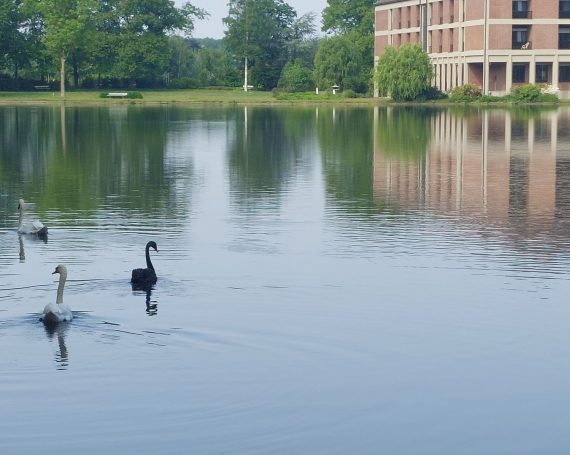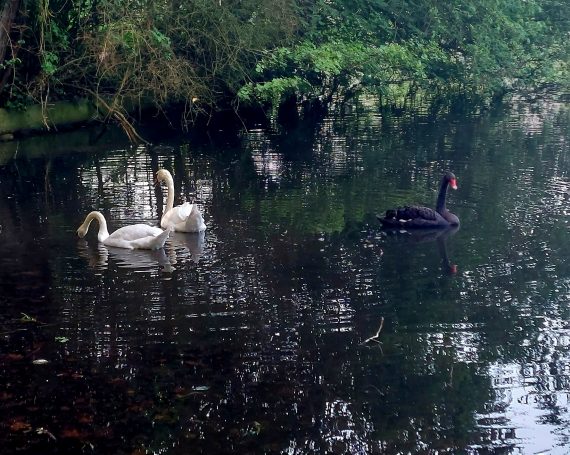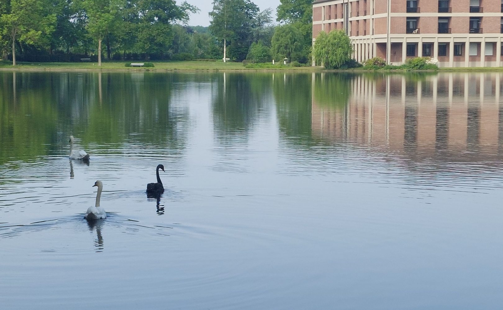 Der Trauerschwan (vermutlich vom Pröbstingsee) ist zu den Höckerschwänen auf den See bei den Schönstätter Marienschwestern umgezogen.