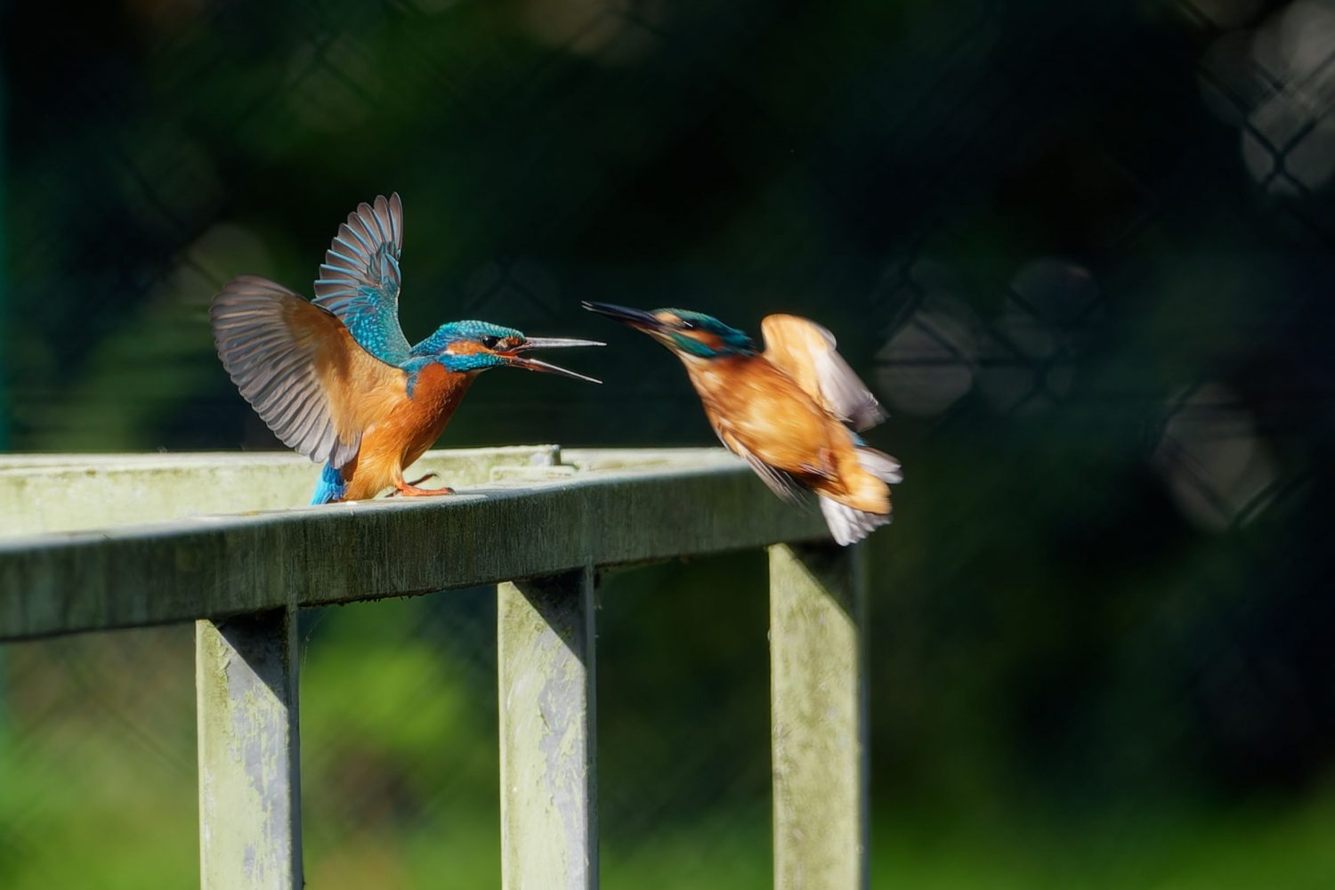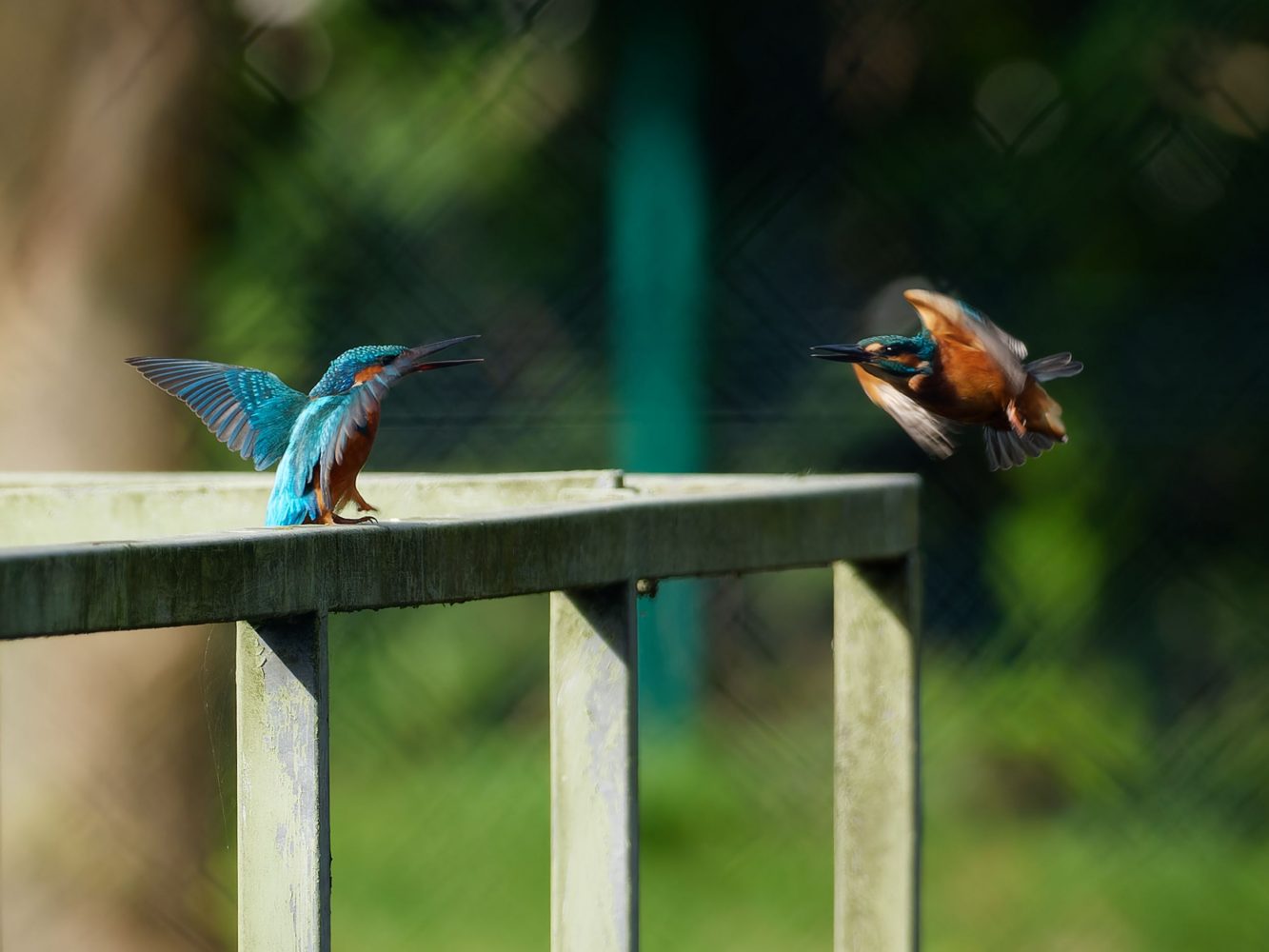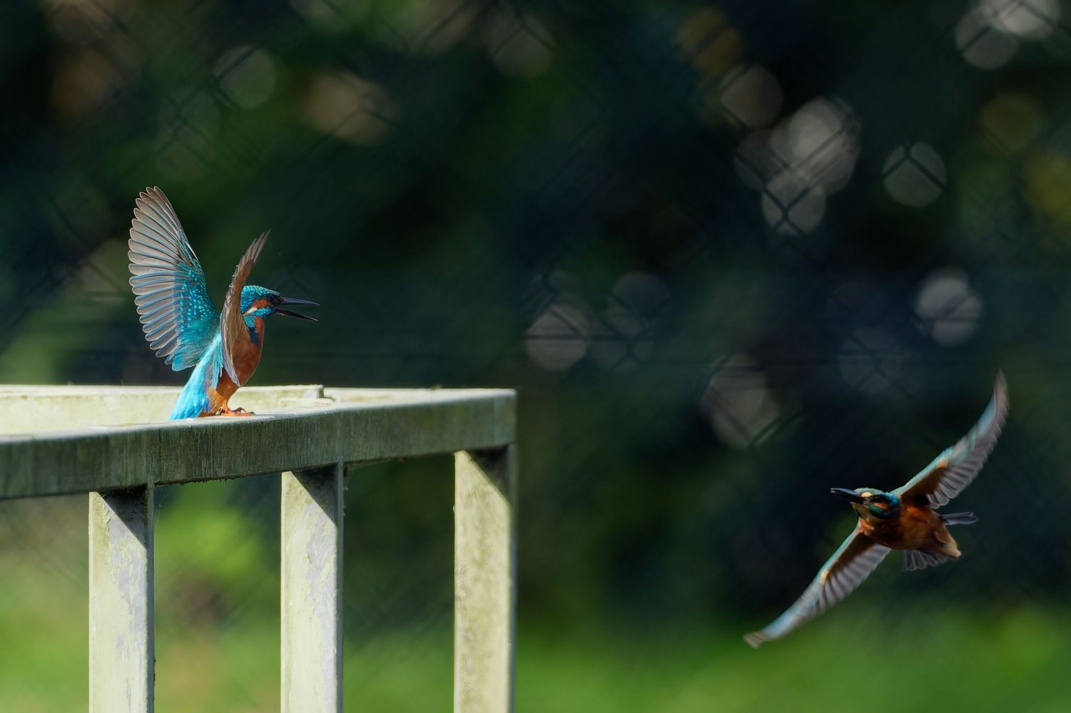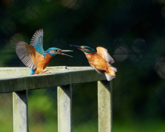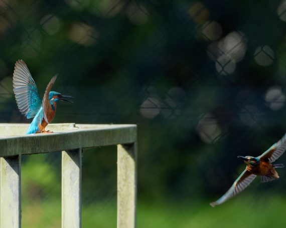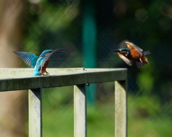 Revierkampf zweier EisvogelmĂ€nnchen am RegenrĂŒckhaltebecken Döringbach.