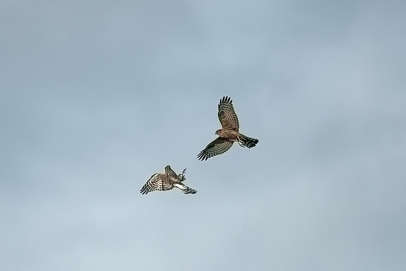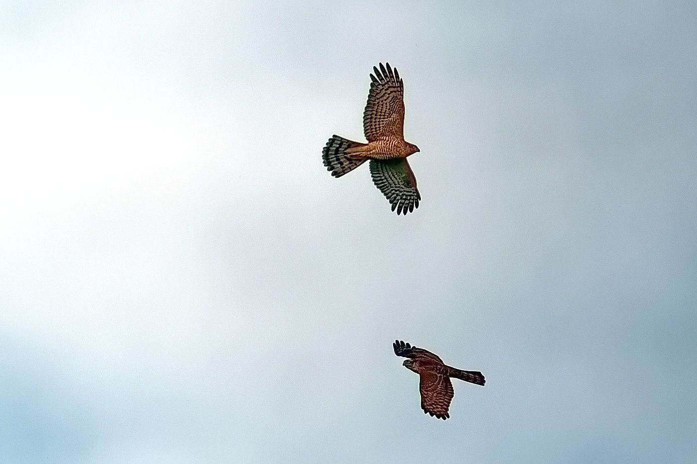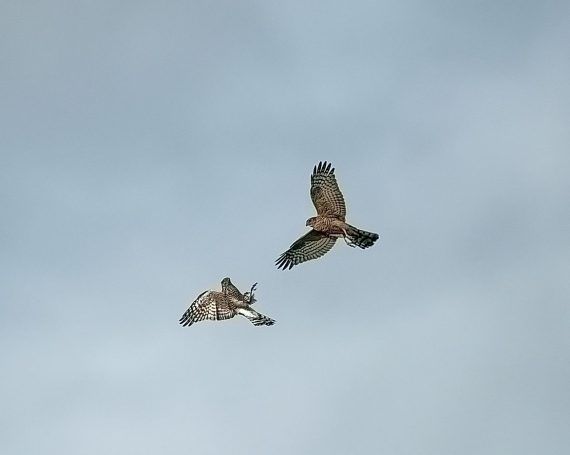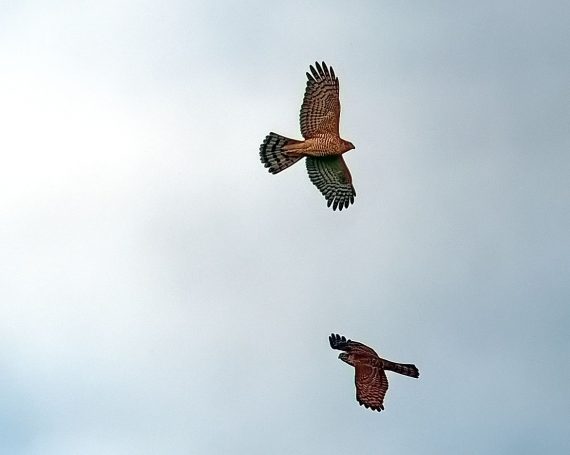 2 Sperber ĂŒber der Deponie in Hoxfeld