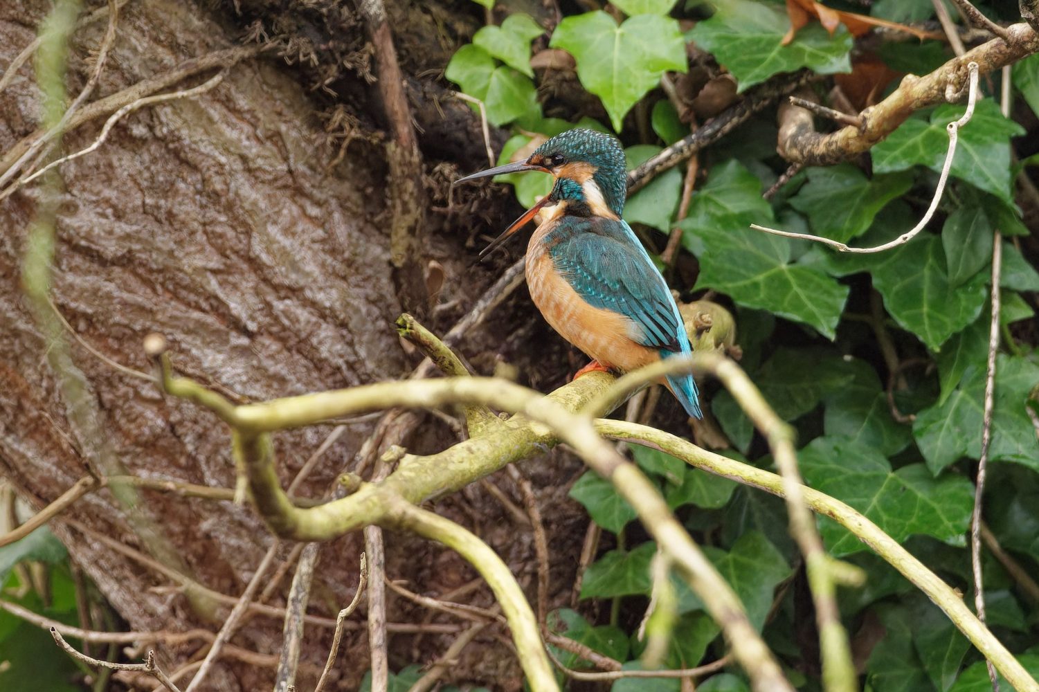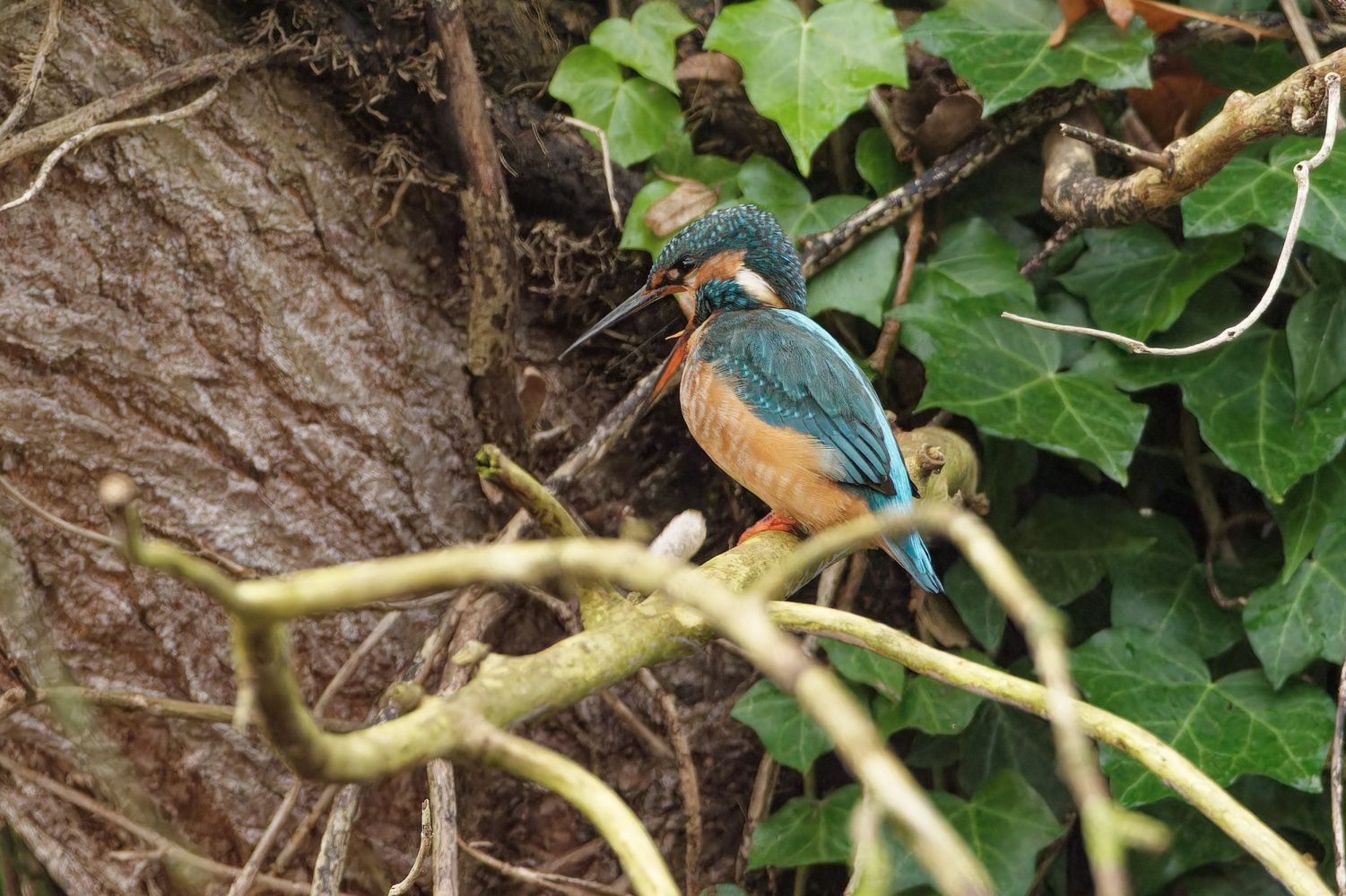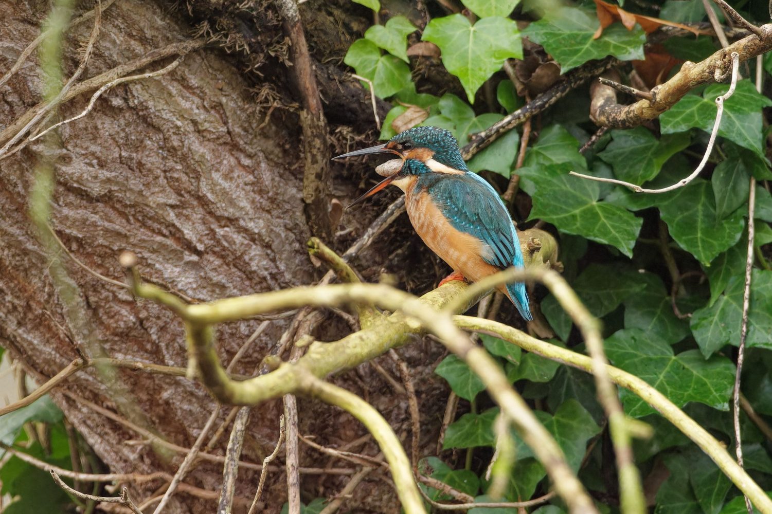 Eisvogel wĂŒrgt Gewölle aus (im Stadtpark).