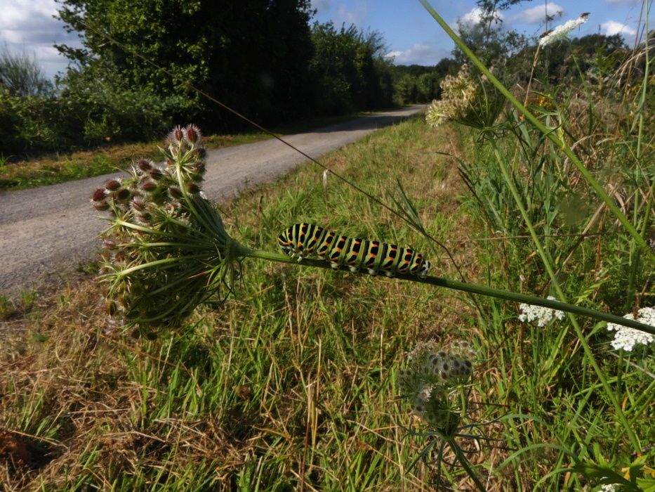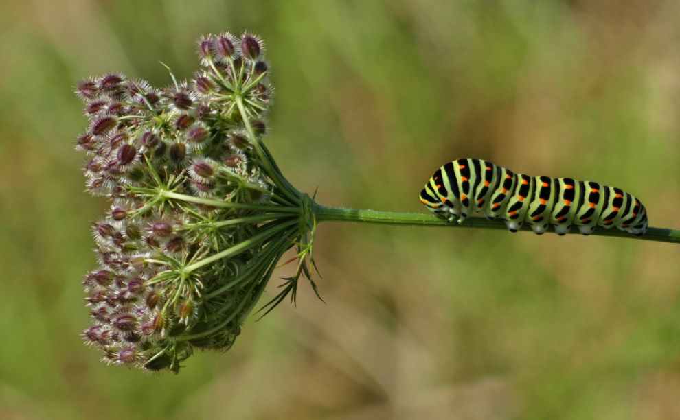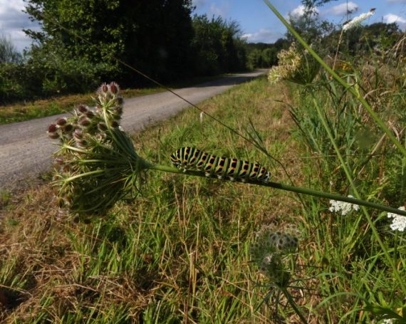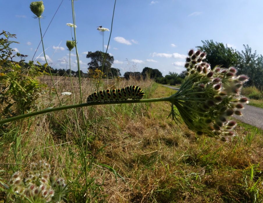 Die Raupe des Schwalbenschwanzes vor einigen Tagen in RhedebrĂĽgge am Aa-Radweg entdeckt. Den Falter habe ich am 18.6. im Vinschgau abgelichtet.