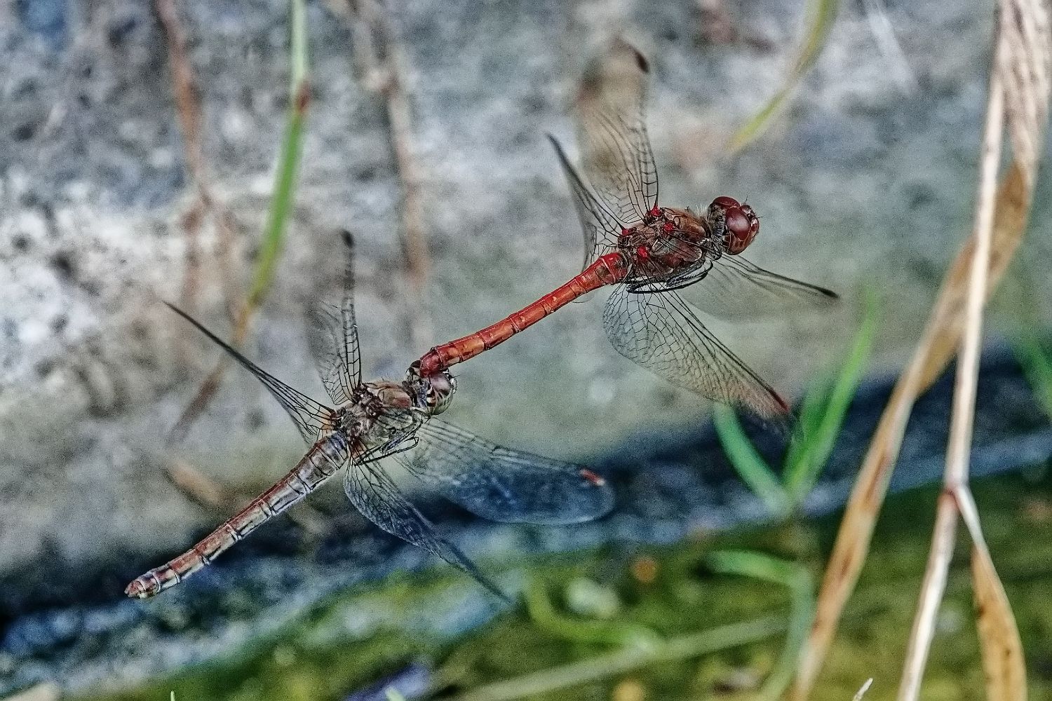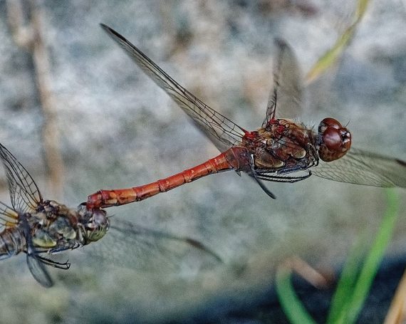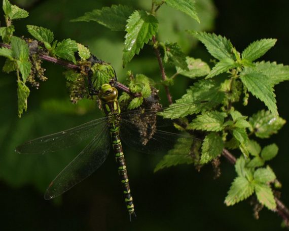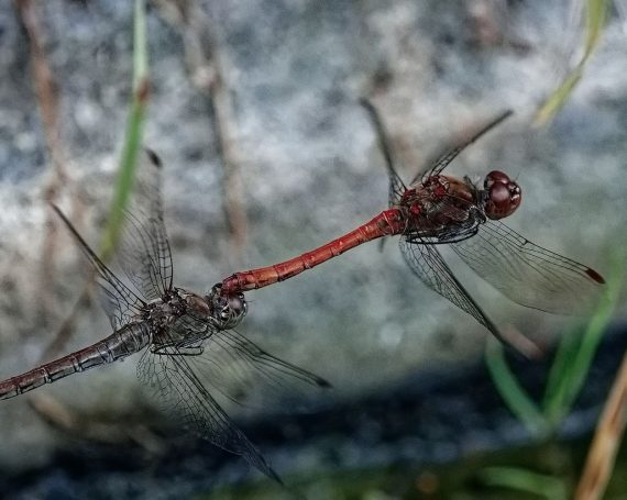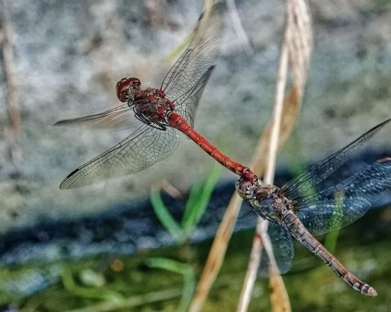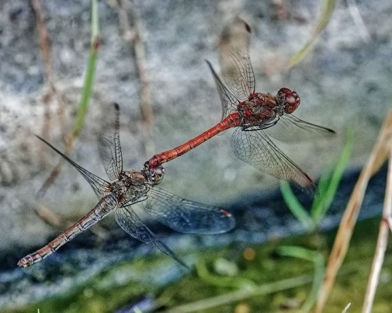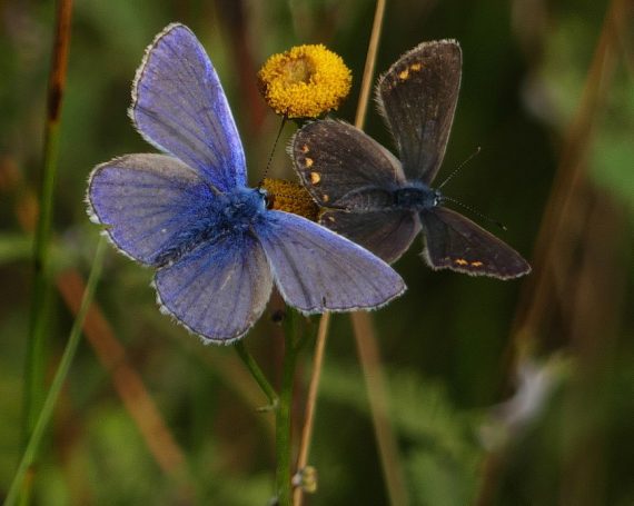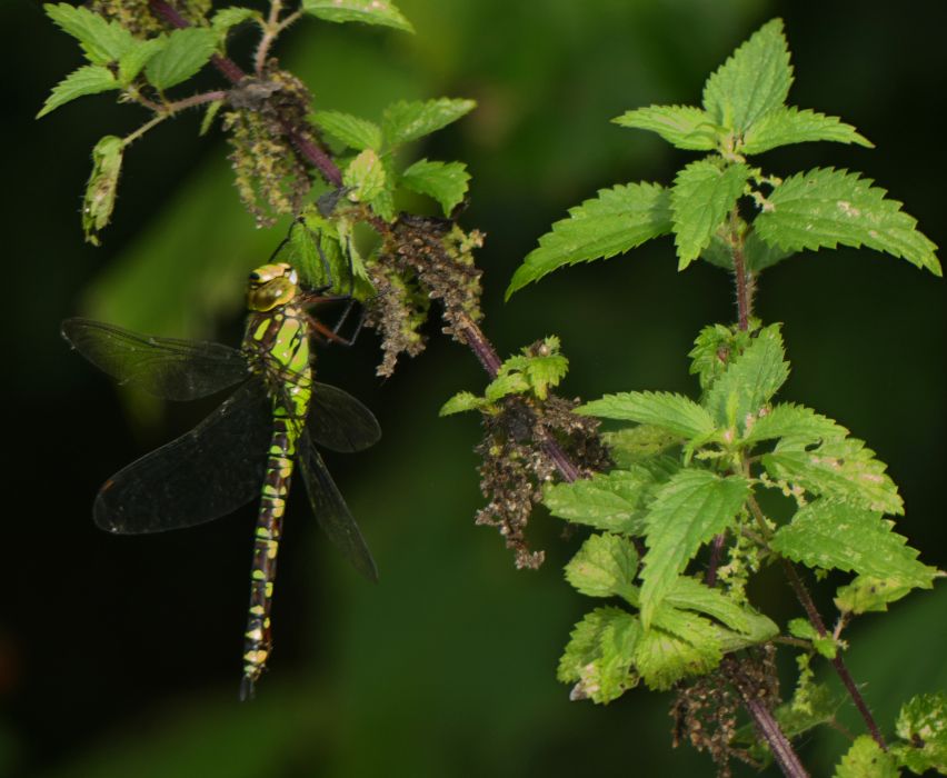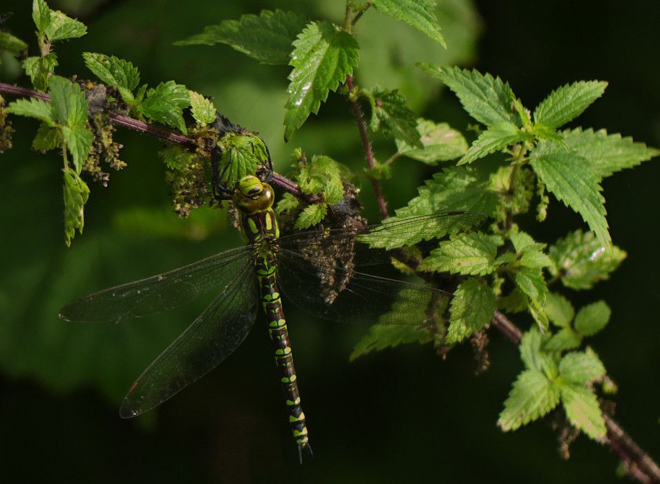 Am 7.9.24 gelangen mir bei Versunken Bokelt in Rhedebrügge Fotos der seltenen Grünen Mosaikjungfer und eines Bläuling- Paares (Hauhechel-Bläuling?).