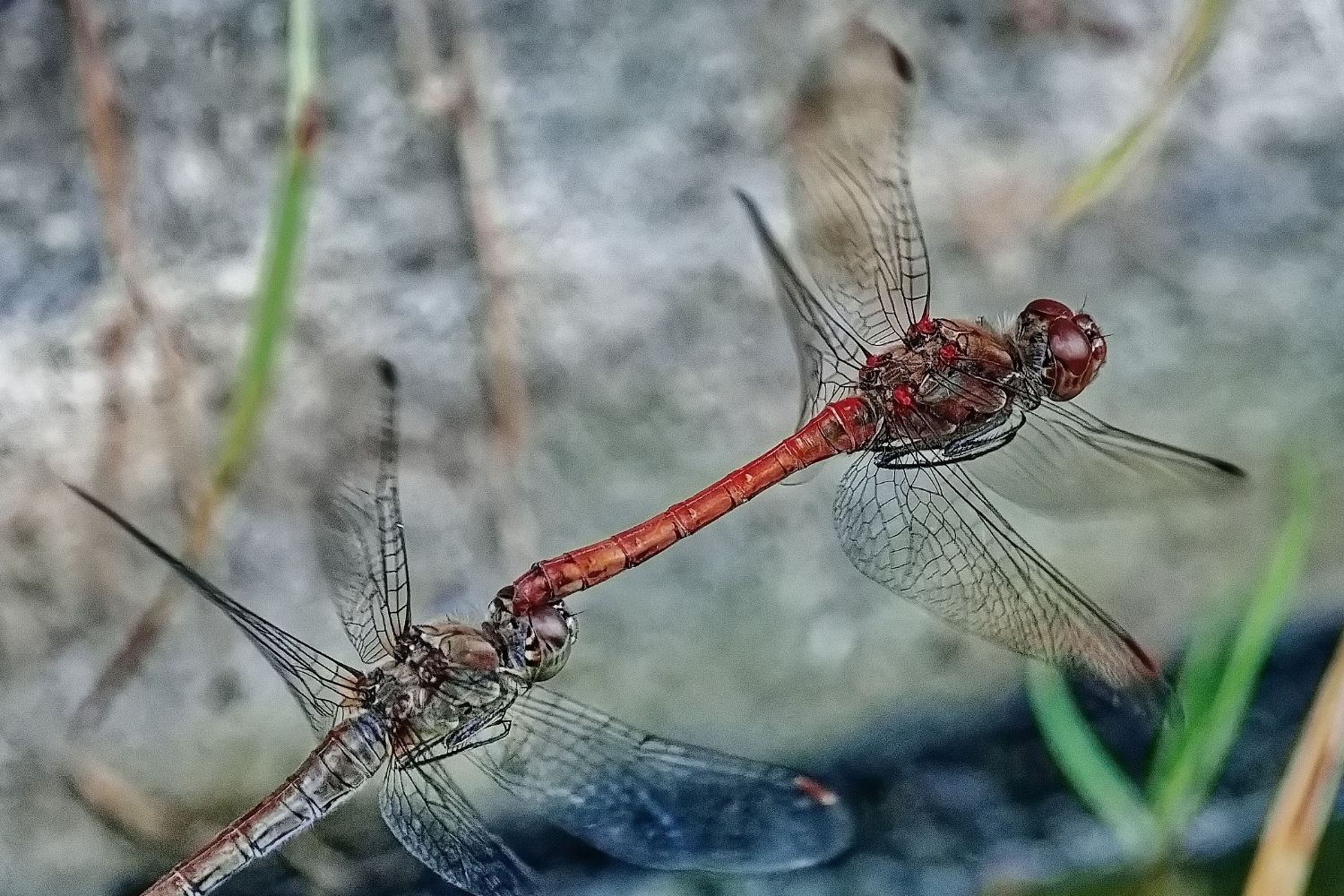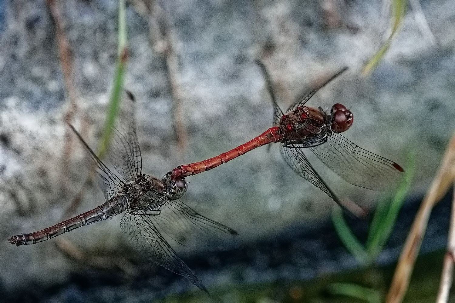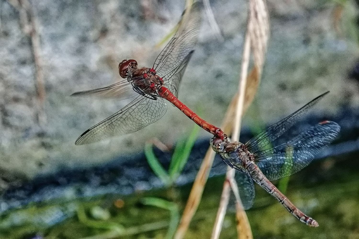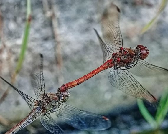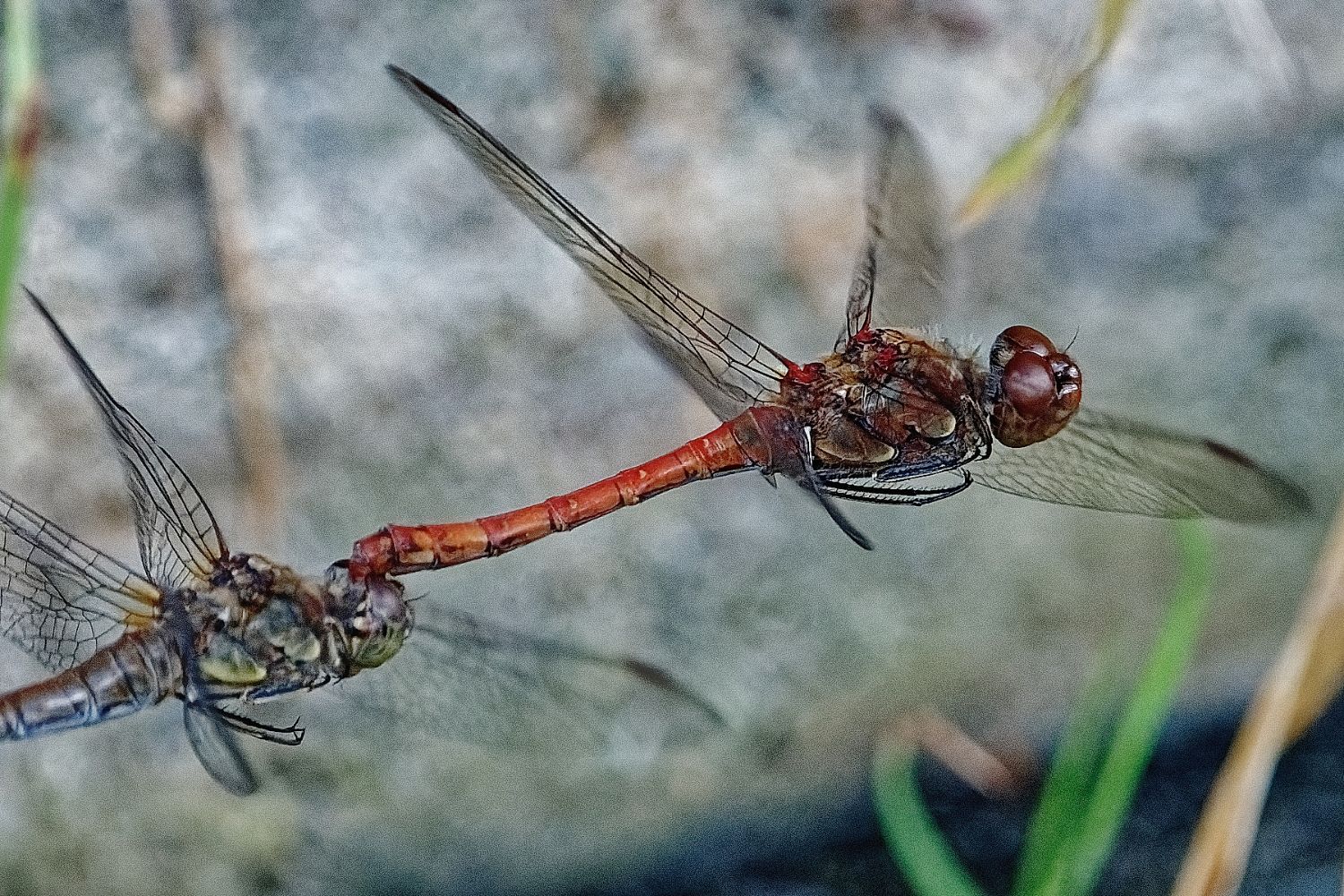 Am 7.9.24 gelangen mir bei Versunken Bokelt in Rhedebrügge Fotos der seltenen Grünen Mosaikjungfer und eines Bläuling- Paares (Hauhechel-Bläuling?).