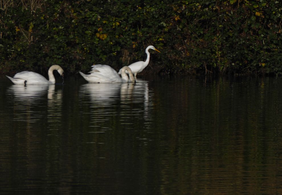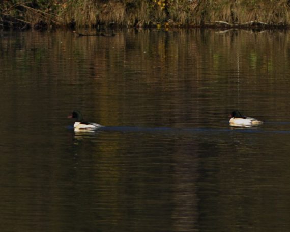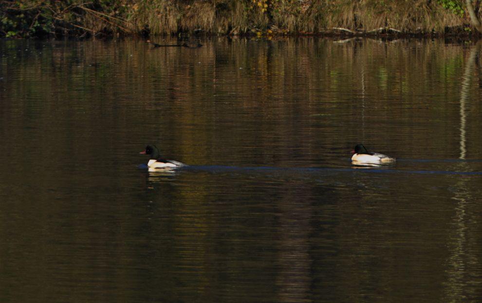Am 1.12. auf dem Pröbstingsee: Ganz in weià (HöckerschwÀne, Silberreiher), GÀnsesÀger, mÀnnlich, + Erpel der Stockente