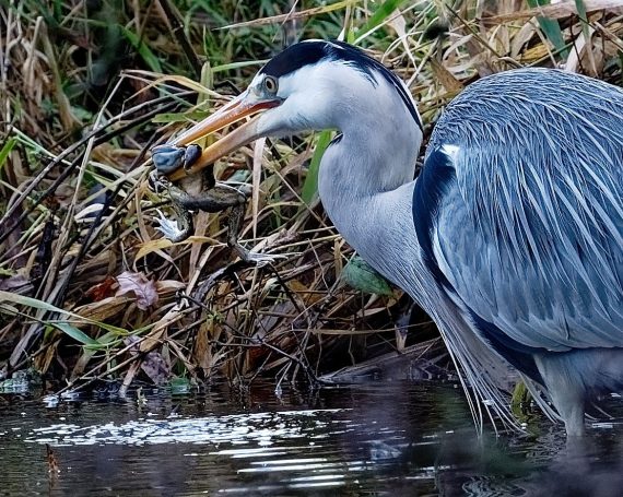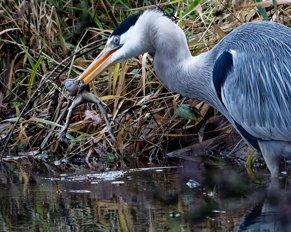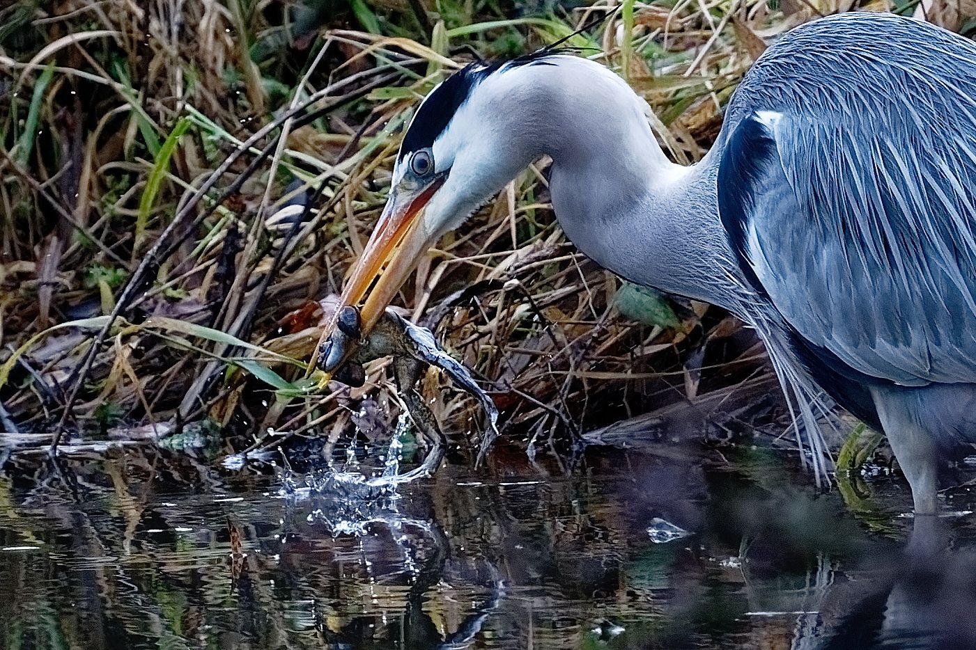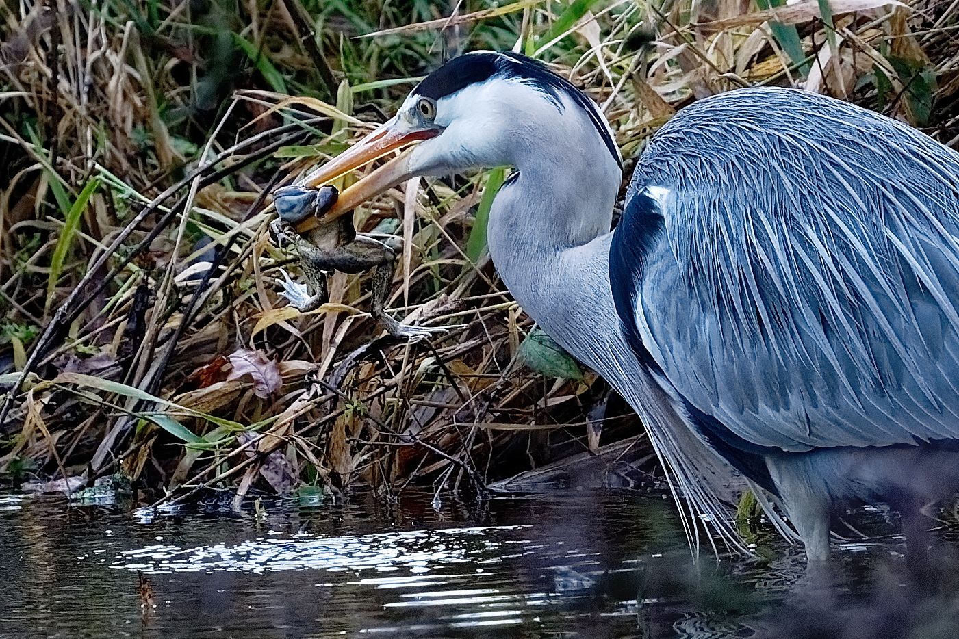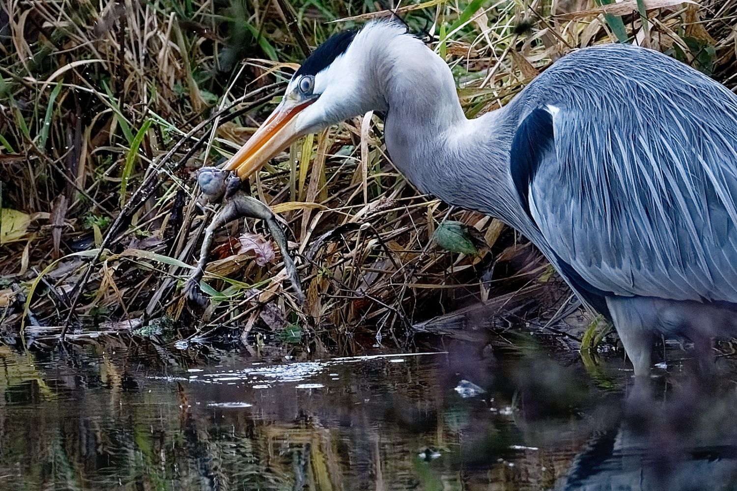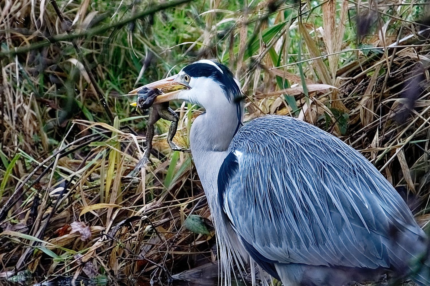 Am 13.12.24 am Engelradingbach bzw. einem kleinen Zufluss (Graben) entdeckt: 1. Graureiher, 2. Silberreiher.