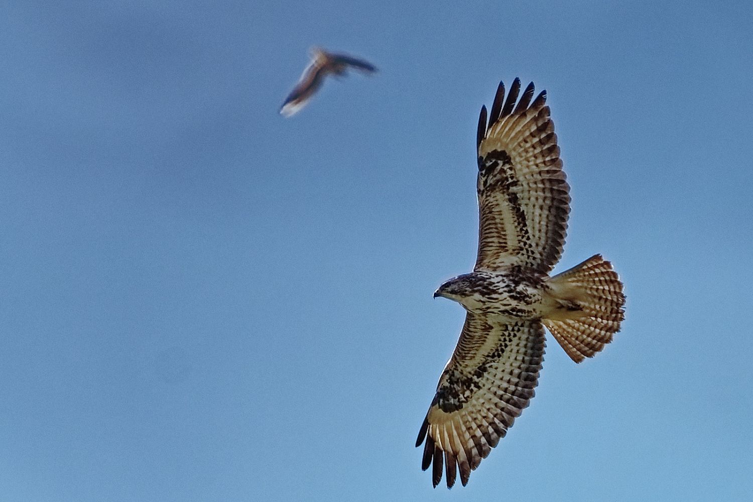 Mäusebussard über dem Flugplatz in Hoxfeld