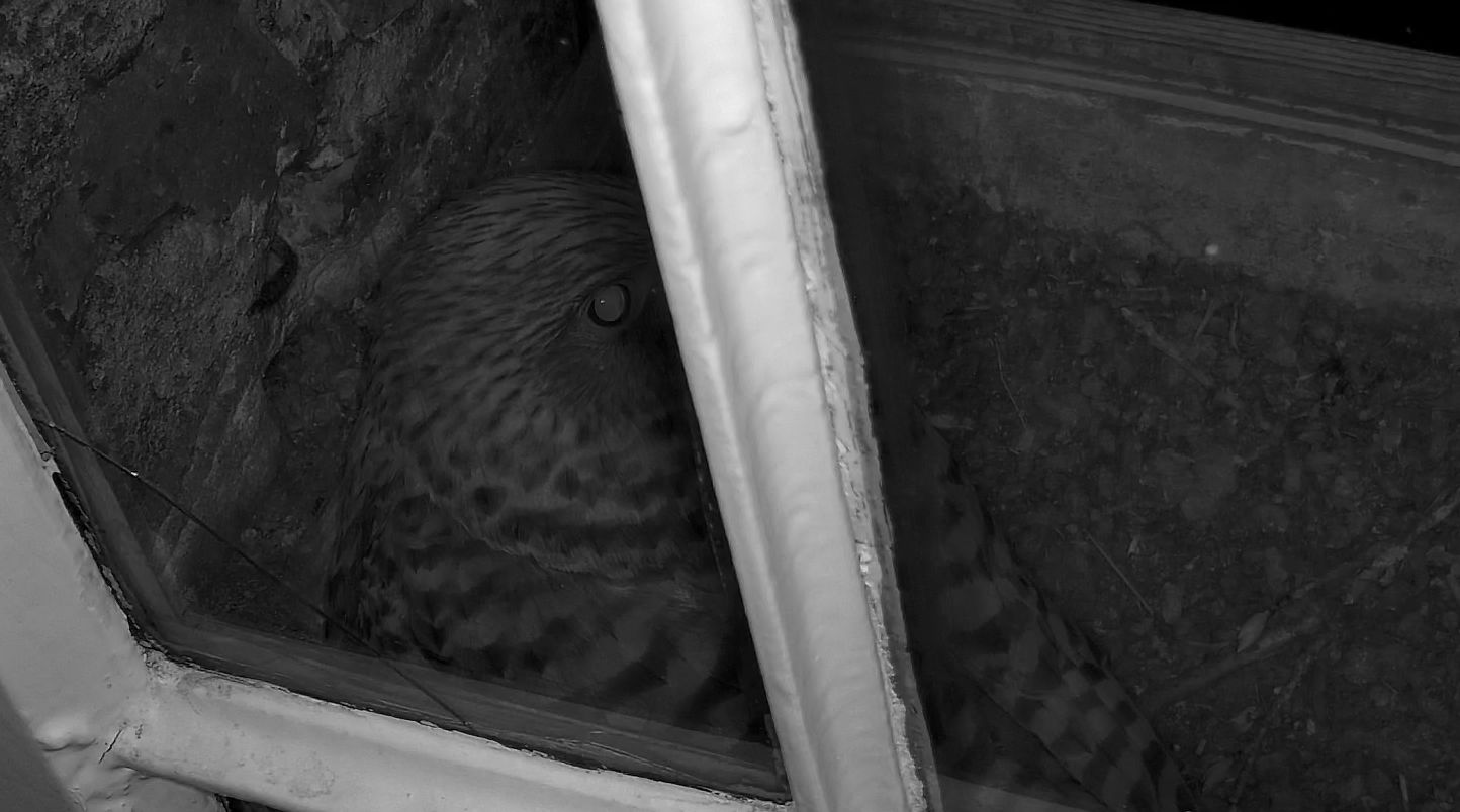 Das Falkenweibchen verbringt die Nächte erstmals wieder am Turm