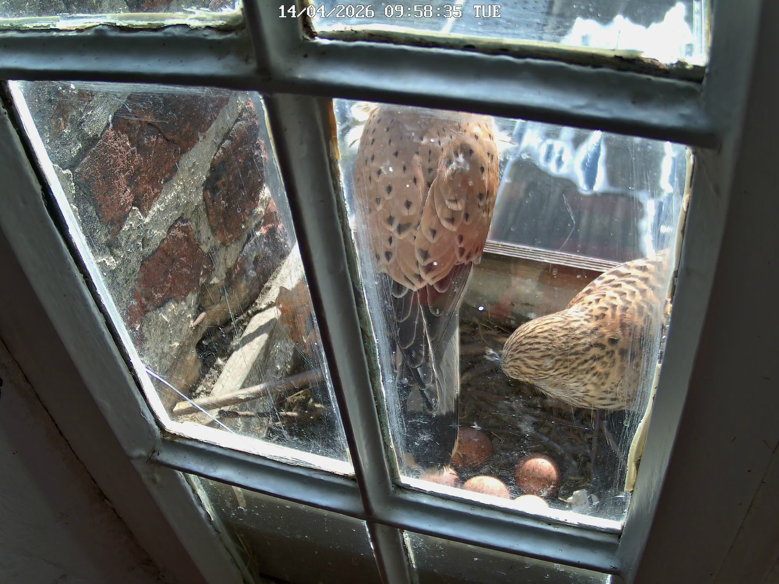 Später als in den vorherigen Jahren sehen wir das Falkenpaar zum ersten Mal am Turm